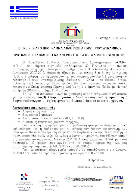 του Πανελληνίου Συλλόγου Προσαρμοσμένων Δραστηριοτήτων ΑΛΜΑ, την Τρίτη 19